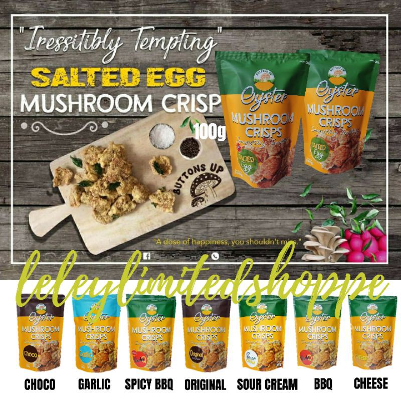 Buttons Up Oyster Mushroom Crisps Best Seller Flavored Crispy Mushroom Chicharon Mushroom Chips Shopee Philippines