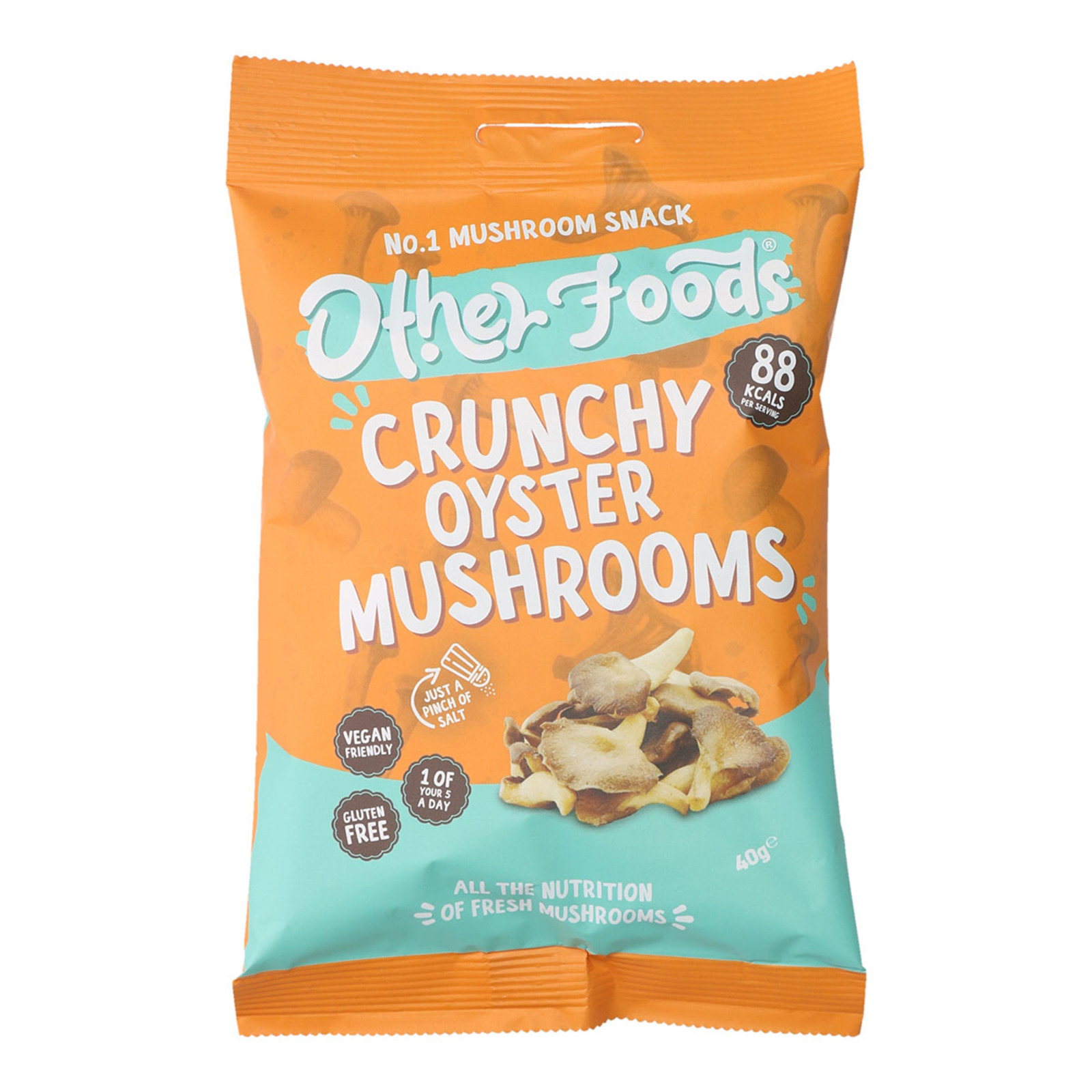 OTHER FOODS CHIPS Crunchy Trumpet Mushroom Chips 40g quantity. OTHER FOODS Crunchy Oyster Mushroom Chips 40g. Our lightly salted crunchy mushroom chips provides the maximum natural veggie goodness.